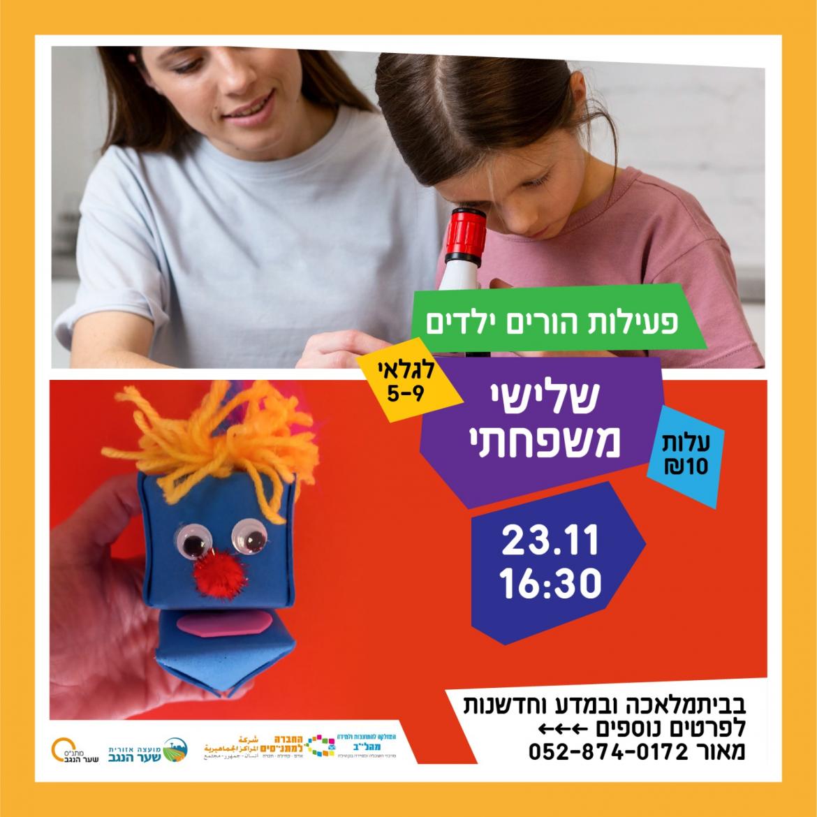 מוזמנים למפגש נוסף של פעילות להורים וילדים במרכז בית מלאכה וחדשנות