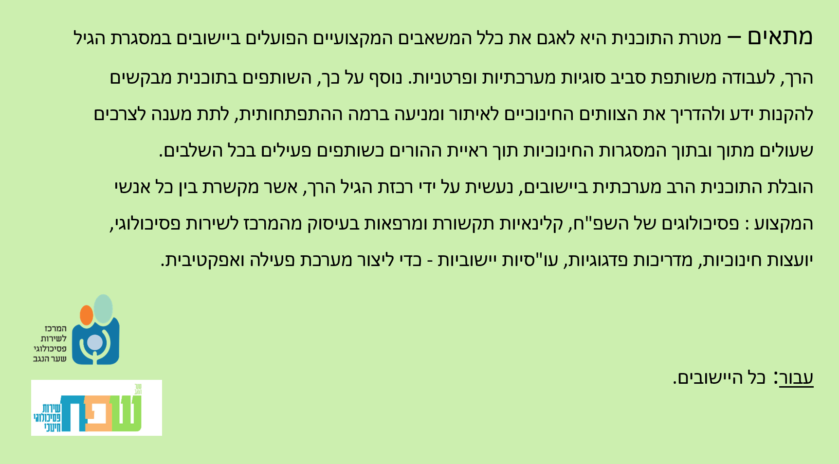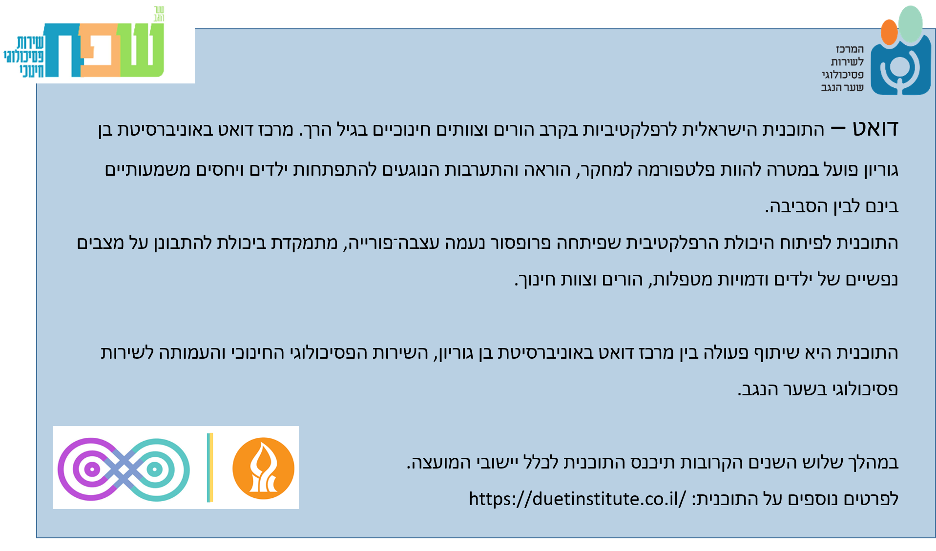 מכתב ממרכז חוסן לתושבים ולהורים 12/11/2019 20:00