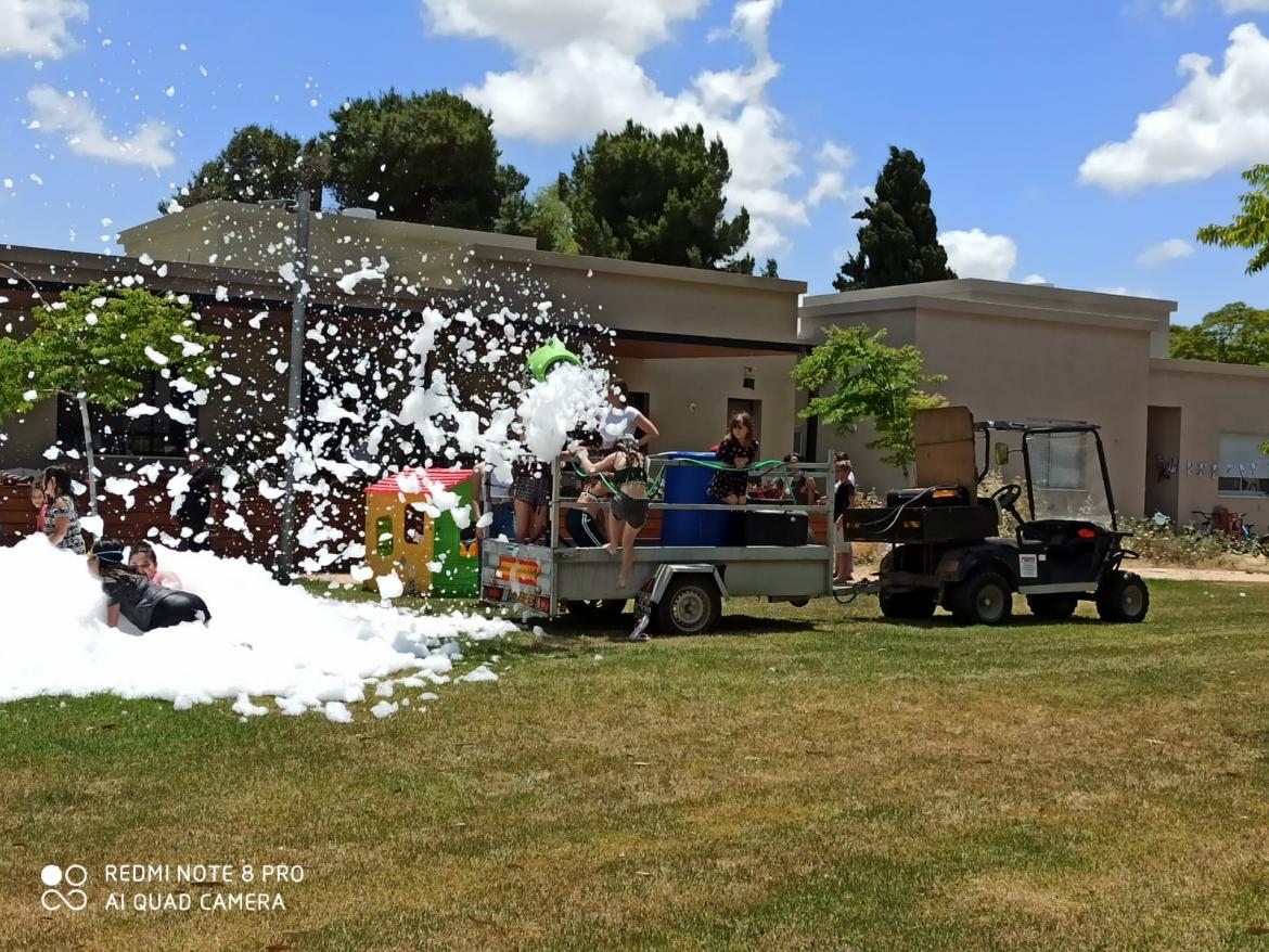 הורים וילדים רצו אל תוך הקצף הנורה מן התותח והפיגו, הן את חום הצהריים והן את דומיית השבתון.