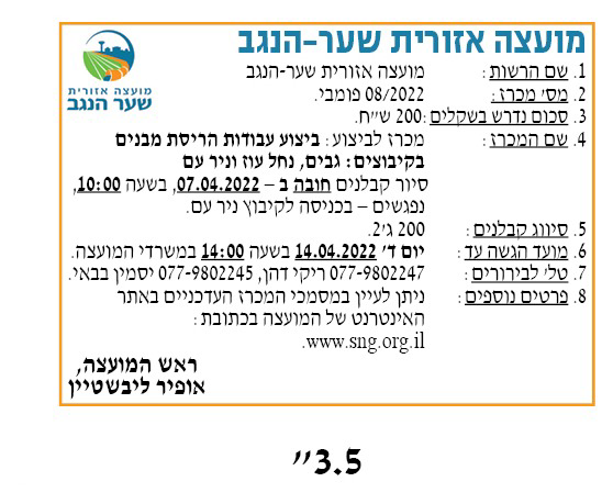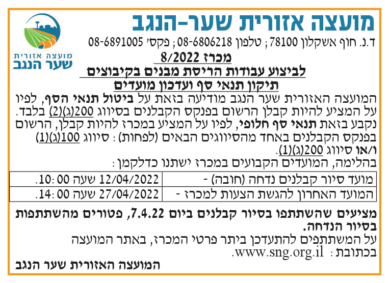 פומבי 8/22- לביצוע עבודות הריסת מבנים בקיבוצים