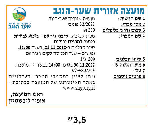 פומבי 33/22 - ביצוע עבודות פיתוח למבנים יבילים בקיבוץ ניר עם