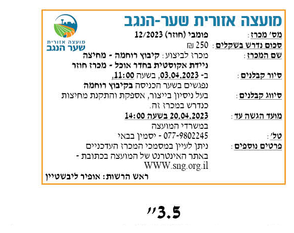 פומבי 12/2023 - חוזר: אספקה והתקנת מחיצה ניידת בחדר אוכל בקיבוץ רוחמה - חוזר