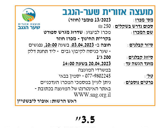 פומבי 13/2023 חוזר - שדרוג מגרש ספורט בקריית החינוך - חוזר