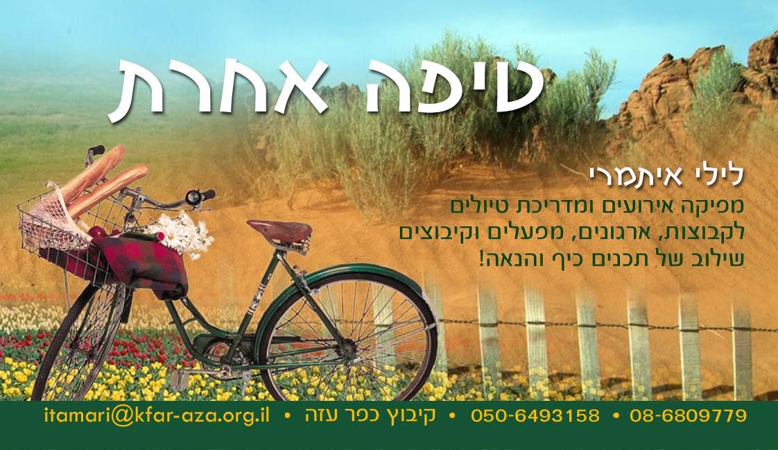 מארגנת שוקי איכרים, מתמחה בארגון ייעוץ והכוונה טיולים ,ימי כייף, גיבוש ונופש למגזר העסקי.