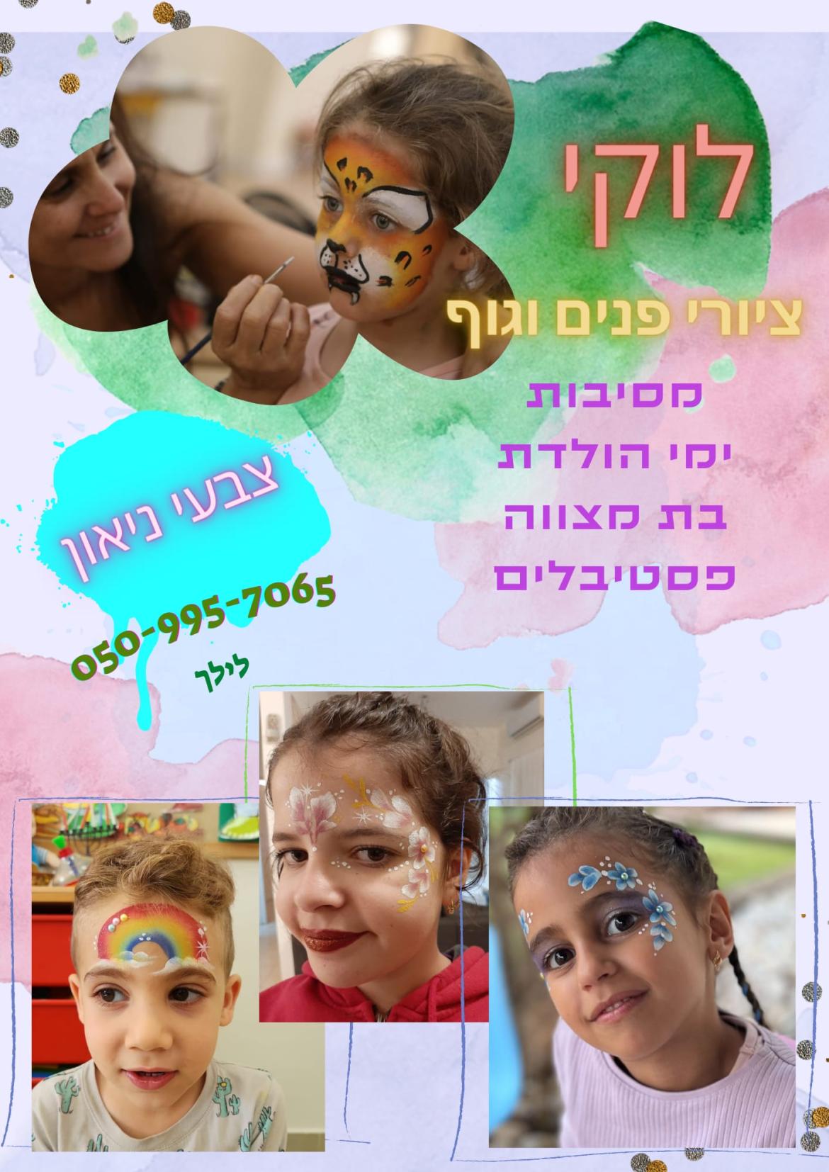 לוקי- ציורי פנים וגוף חוויה בצבע.rnלימי הולדת, בת מצווה, הפנינג, פסטיבלים,rnמסיבות פול מון עם צבעים זוהרים