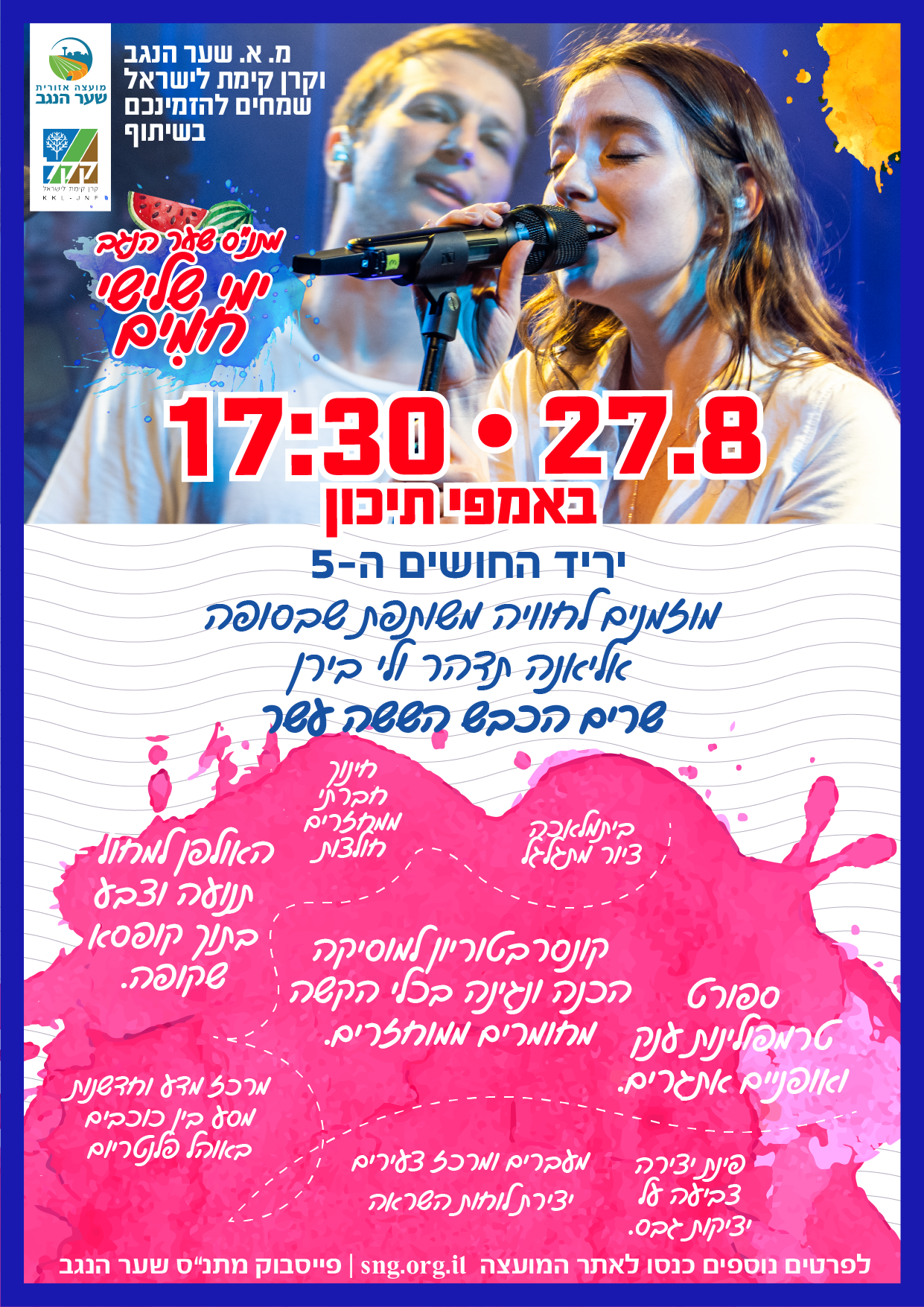 הוסף ללוח שנה 2026-04-06 19:40:40 1970-01-01 03:00:00 Asia/Jerusalem שלישי חמים במתנ"ס יריד חושים 2019 למידע מלא: https://www.sng.org.il:443/events/172/ אמפי תיכון שער הנגב