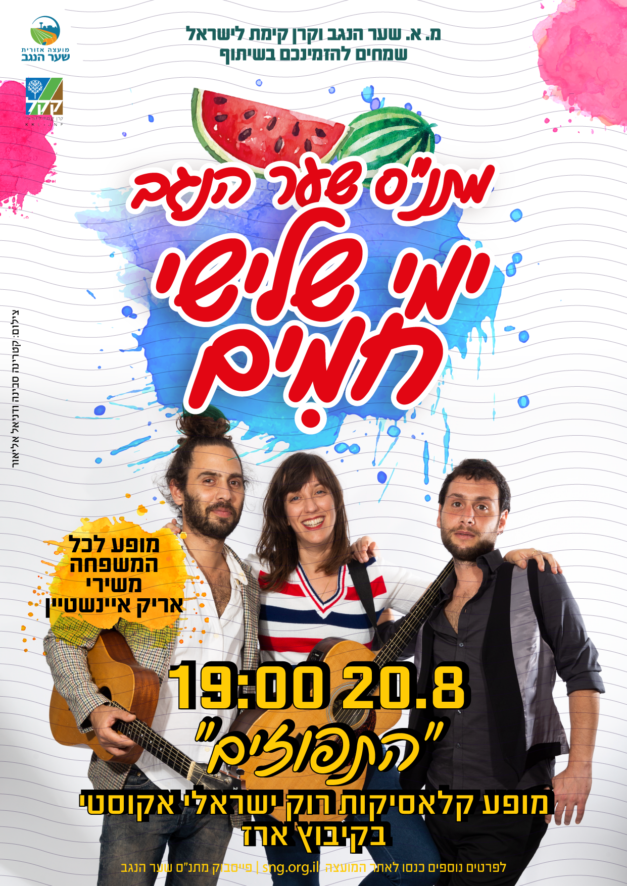 הוסף ללוח שנה 2026-04-06 19:39:16 1970-01-01 03:00:00 Asia/Jerusalem שלישי חמים במתנ"ס - "התפוזים" ערב שירי קאבר אריק אינשטיין למידע מלא: https://www.sng.org.il:443/events/174/ קיבוץ ארז