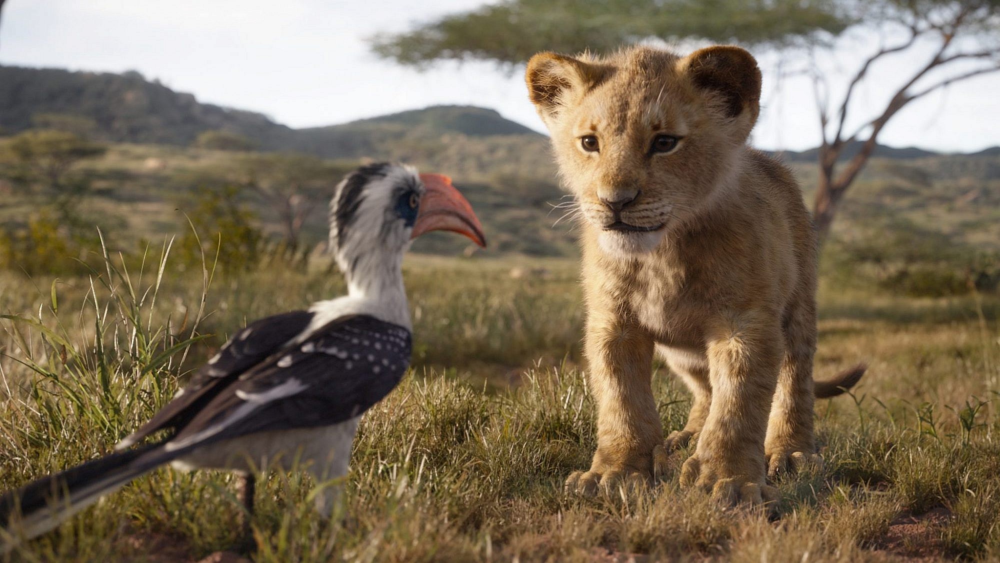 סימבה מעריץ את אביו, המלך מופאסה ולוקח ברצינות גמורה את עתידו המלכותי. אך לא כולם בממלכה חוגגים את הולדתו של גור האריות החדש. סקאר, אחיו של מופאסה והיורש לשעבר של כס המלכות, זומם תכניות משלו. הקרב על צוק התקווה מזוהם כולו בבגידה, טרגדיה ודרמה שנגמרת לבסוף בהגלייתו של סימבה. בעזרת זוג חברים חדשים ומסקרנים, סימבה ימצא את דרכו לבגרות וייקח בחזרה את כס המלכות ששייך לו באופן חוקי.