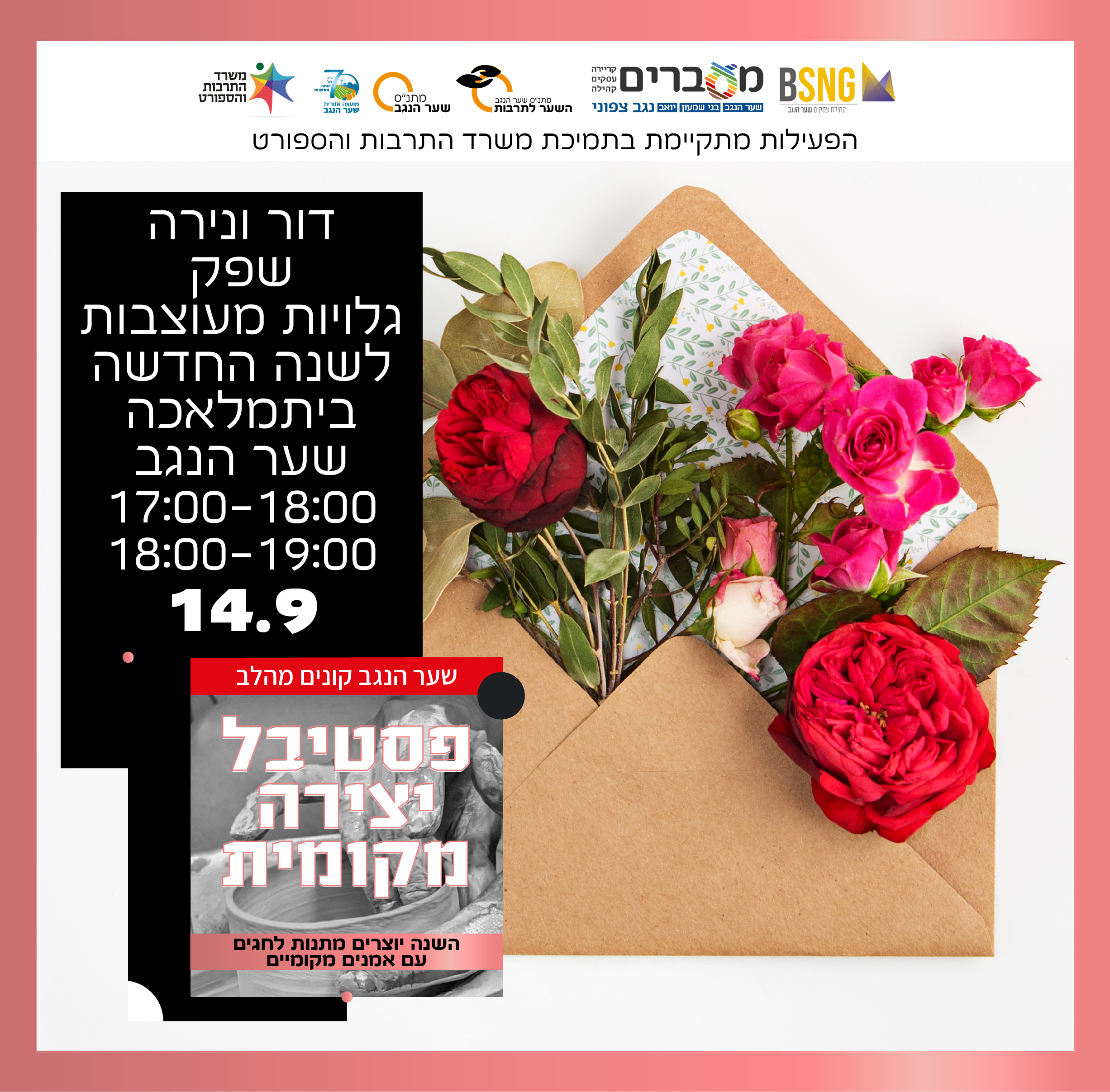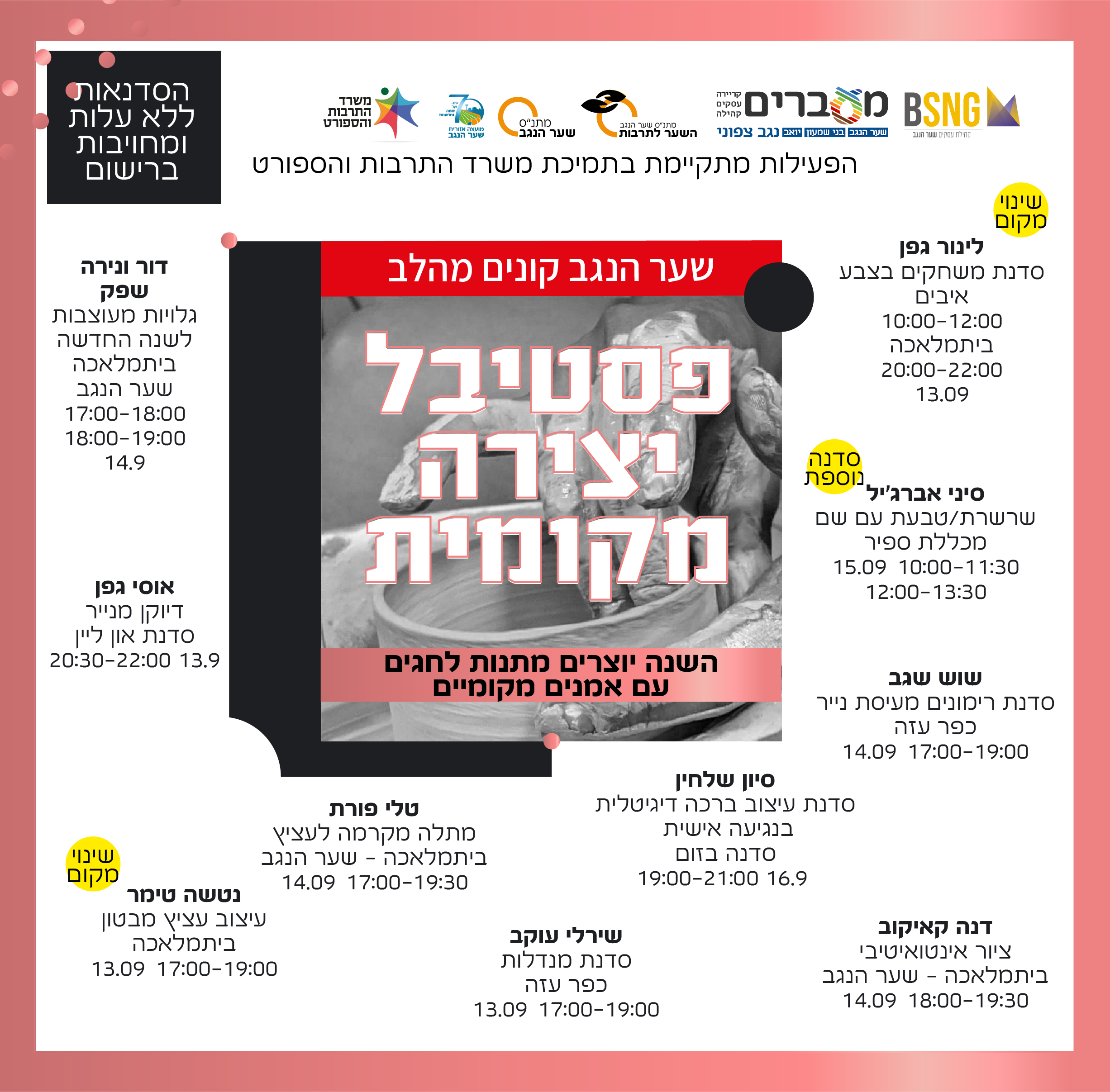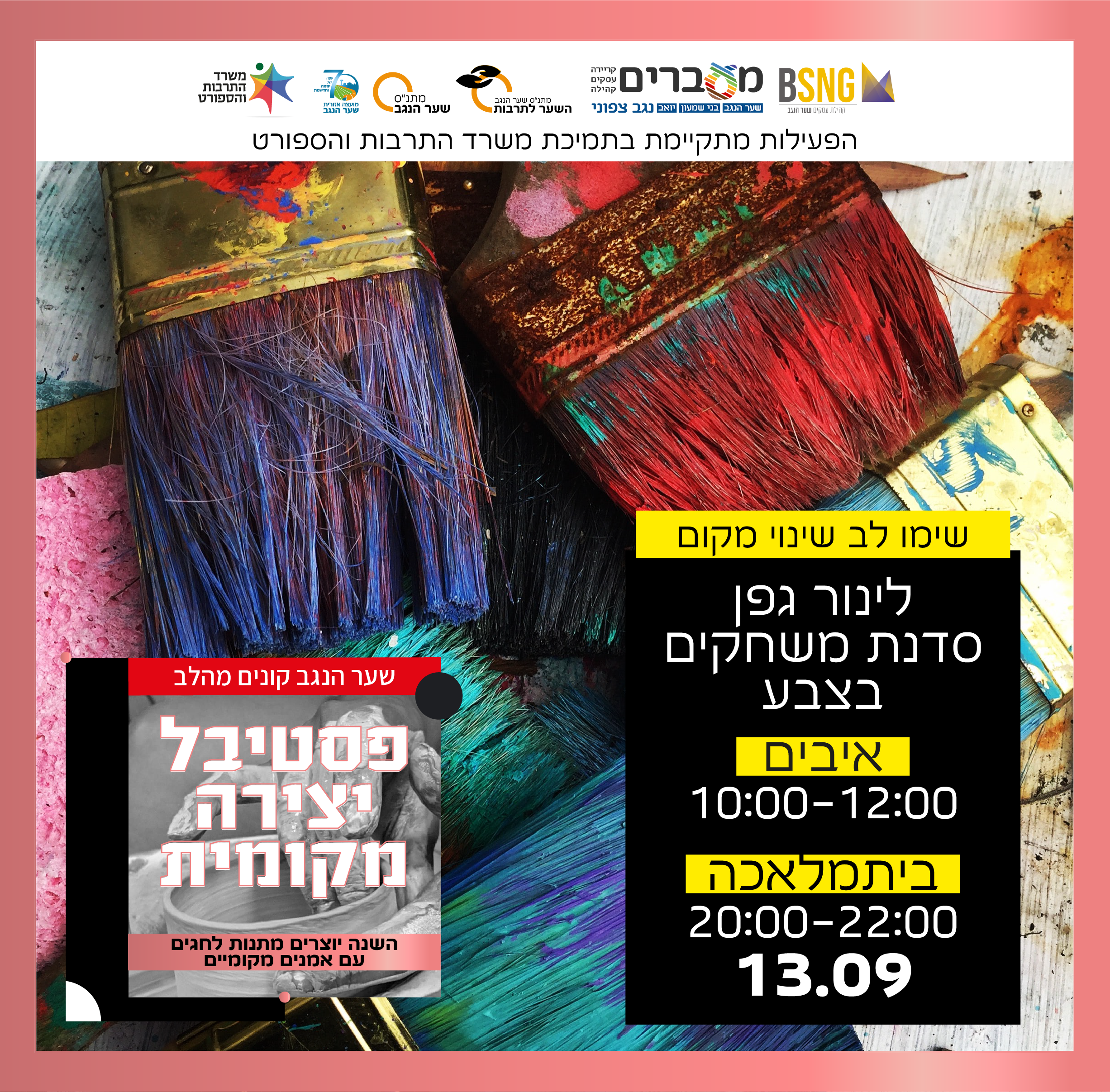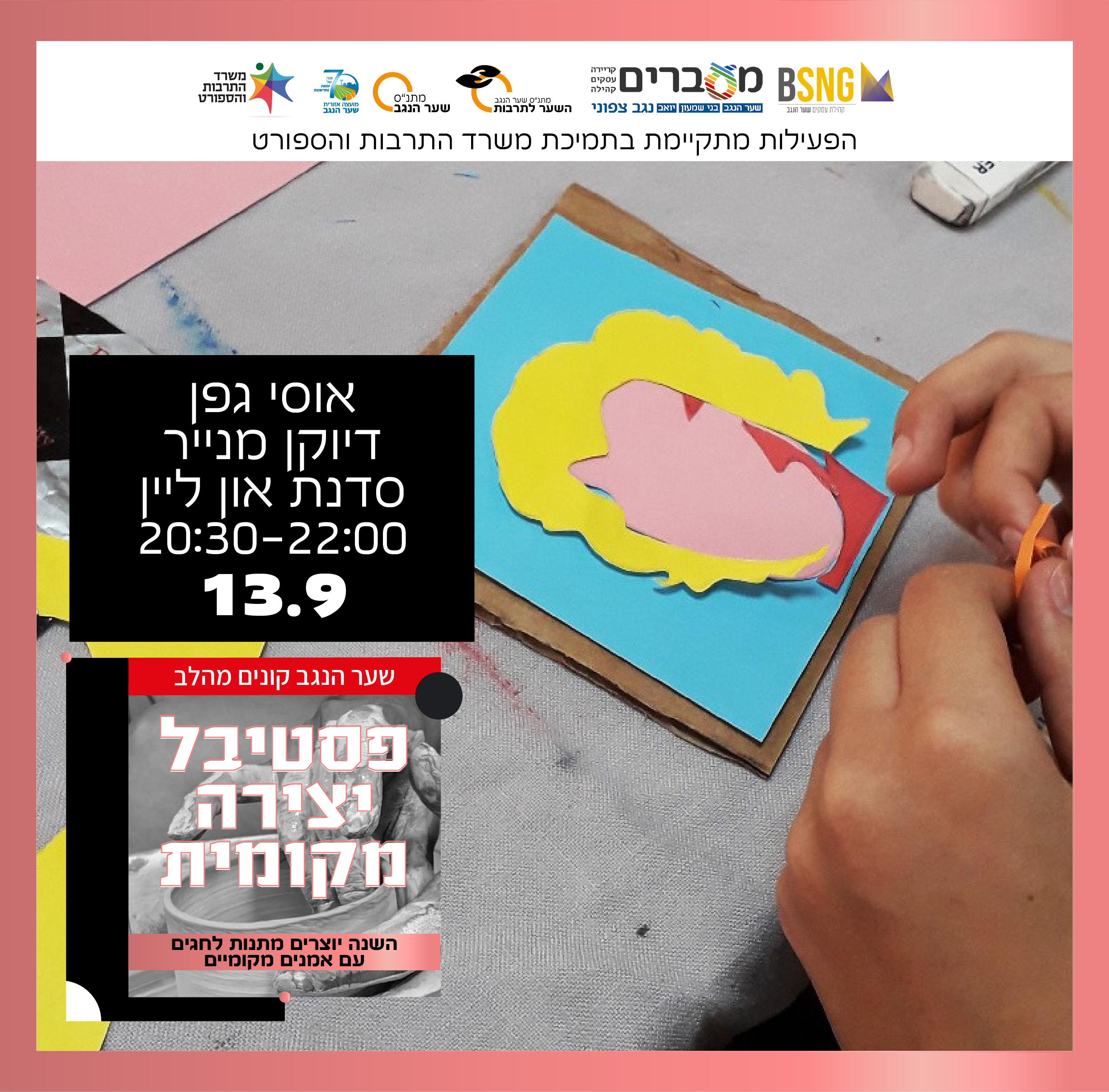 הוסף ללוח שנה 2026-04-04 07:17:18 1970-01-01 03:00:00 Asia/Jerusalem פסטיבל יצירה מקומית למידע מלא: https://www.sng.org.il:443/events/423/