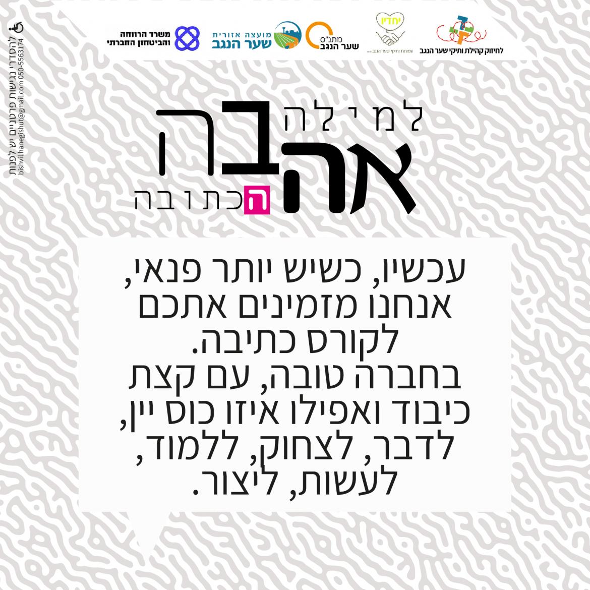 ואפשר גם לדבר עם לבנת קוץ מביתמלאכה על כל הפרטים - 0543339887